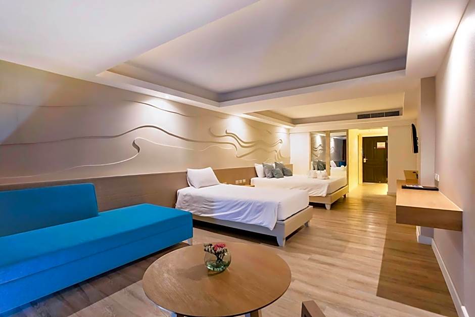 The spacious family room features air conditioning, a mini-bar, a balcony with pool views as well as a private bathroom boasting a bath. The unit has 2 beds.